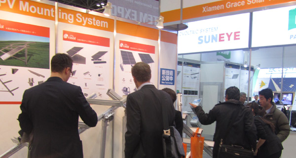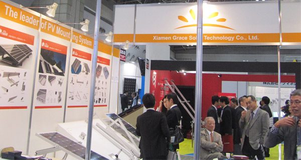 素晴らしい展覧会でグレースソーラが現れて、よく国外の専門家が弊社のブースへお越しいただきました。出展した太陽光発電陸用打ち込み架台システムおよび 陸屋根用傾斜架台システムは外観のデザインが精美で、架台が強くて、実際応用された場合でパーソナル化、優れた安定気質がよく出ってきました。専門家に情 熱的に追いかけされました。これはグレースローラーが日本シャアへ進軍し発展するとしてマイルストーンです。