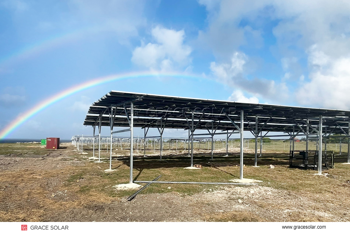 最近、グレースソーラーが設計・納入したバルバドス太陽光発電農家プロジェクトは、地元の豊富な太陽光発電資源を十分に利用するだけでなく、地元沿海周辺の限られた土地資源も十分に利用し、地元の太陽光発電+農業栽培の発展を成功的に促進しています。このプロジェクトはサトウキビの栽培を主とし、グレースソーラーとスイスはバルバドス地域の特徴とサトウキビの光の需要に対応し、全炭素鋼構造を采用し、安定性が高く、スパンが大きく、設置が便利で、植生の光の照射と生育条件が最適化されています。