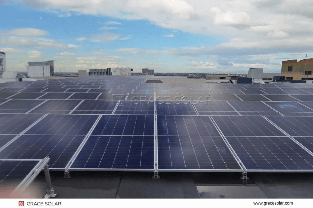 まずは、グレースソーラーは、豊富な製品スペクトルとサービスソリューションで完璧な産業チェーンエコロジーを構築してきましたから、さまざまな顧客のニーズと環境要件を満たします。フィリピンのSMシティプラザに位置する4.5MWの 屋上分散型太陽光発電所プロジェクトは 、グレースソーラーが現地市場のニーズに合わせた最適なソリューションです。顧客の実際のニーズに従って、このプロジェクトはフィリピンの高温、多雨、頻繁な台風などの気候特性を十分に考慮し、耐候性、耐風圧性の高い「能舍・屋根架台システム」ソリューションを選択し、過酷な環境でも発電所を安定的に運営できるようにしました。