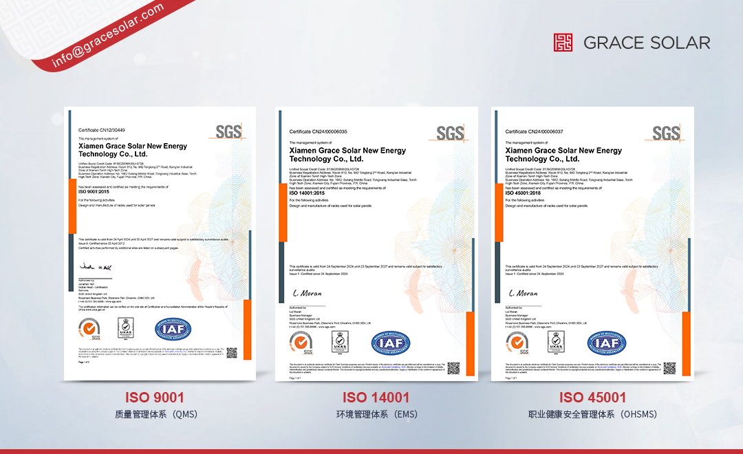グレースソーラーは日本や欧州に現地チームを配置し、「グローバル開発+地域供給」を実現。15GWのスマート工場とIoTによる生産管理体制により、関税変動にも迅速に対応可能です。TüVやJIS認証を取得し、100カ国以上で貿易障壁の回避を実現しています。