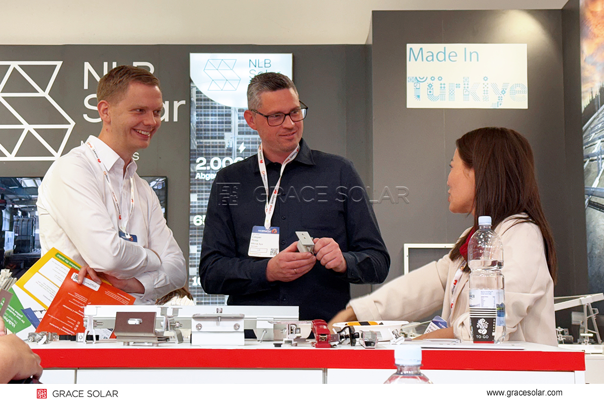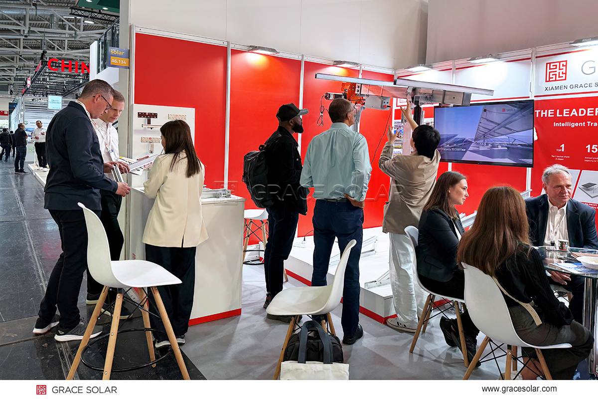 太陽光発電業界のグローバルイベント「Intersolar Europe 2025」が、5月7日から9日までドイツ?ミュンヘンの国際展覧会で開催されました。太陽光架台分野の革新リーダーとして、グレースソーラーは追尾式架台システム、屋根?野立て架台システムなどの最新技術と共に登場しました。実演デモ?デジタル展示?専門家対話を通じて、世界中の市場に向けて新たな開発成果を披露しました(ブース番号:A6.134)。