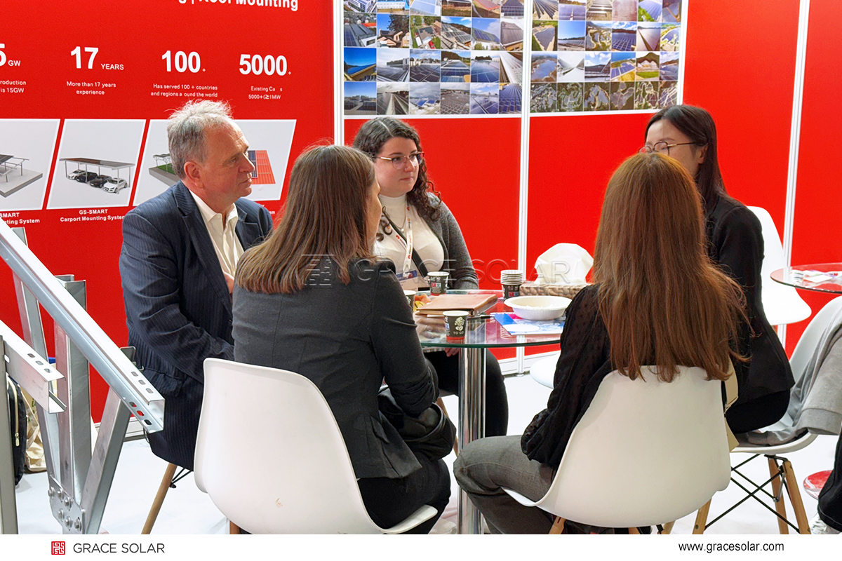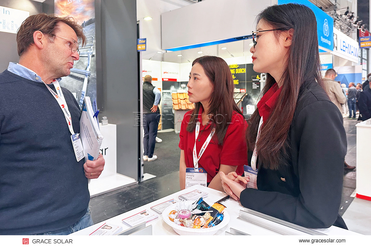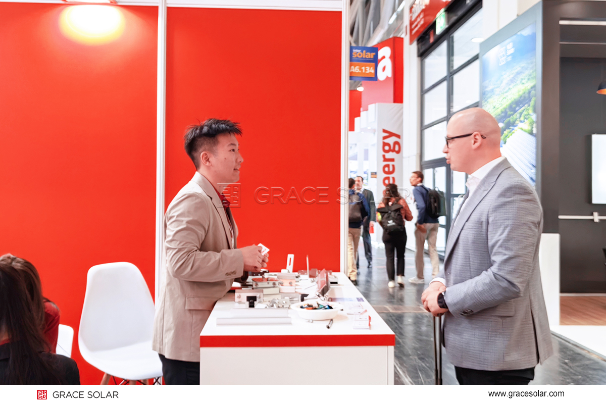 グレースソーラーの技術展示会には多くの専門家から注目を集めました。熱心な意見交換が行われました。技術解説ではコア技術の優位性を強調し、ビジネスチームはヨーロッパ各国の政策や市場ニーズに基づいたカスタマイズ提案を提供しました。多くの業界観客から技術力とサービス品質に対する高く評価されました。