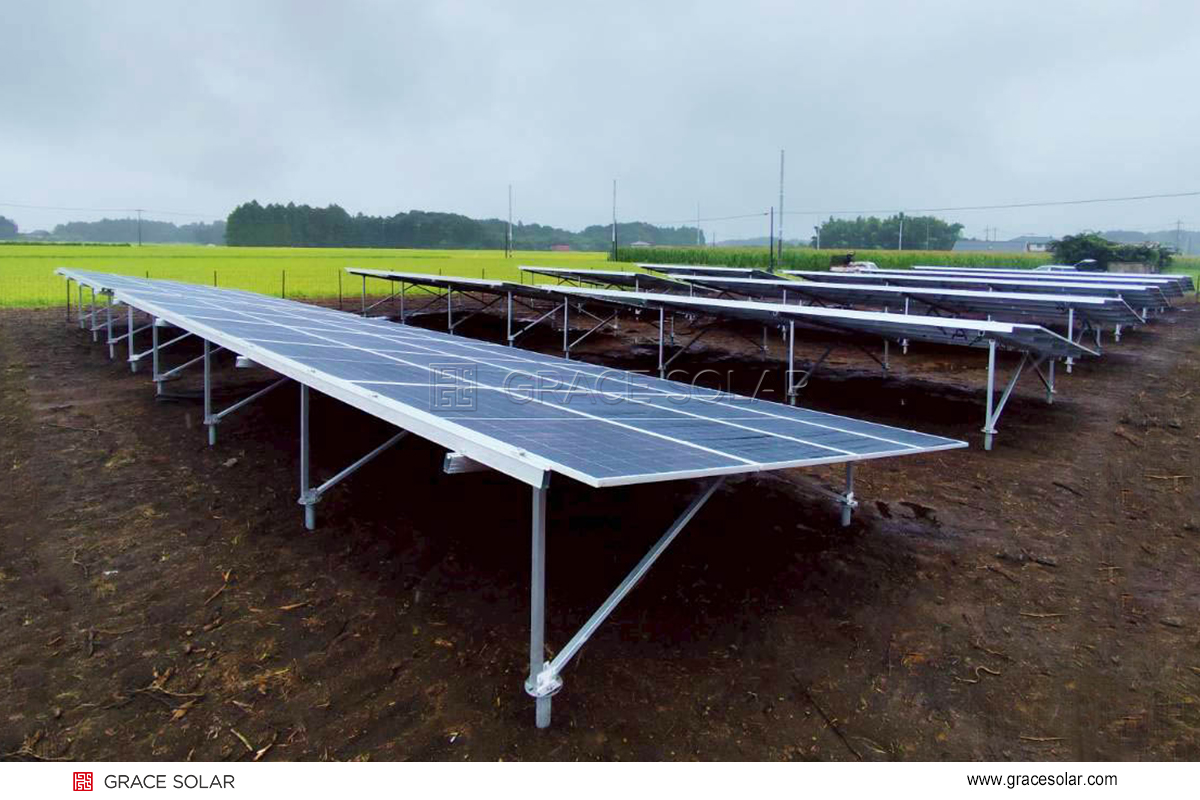 関東地方北部に位置する栃木県において、グレースソーラーのアルミニウム合金製太陽光架台を採用した地上設置型発電所の数々が順調に建設され、運転を開始しています。内陸に位置する栃木県は、山地と丘陵が主な地形であり、四季がはっきりとした気候で、冬季の積雪と夏季の強風が、太陽光架台の耐候性と構造安定性に対する二重の試練となっています。グレースソーラーは、環境に高度に適応した架台ソリューションと現地化されたサービス能力により、この厳しい環境において効率的で信頼性の高い太陽光発電システムの構築に成功しました。