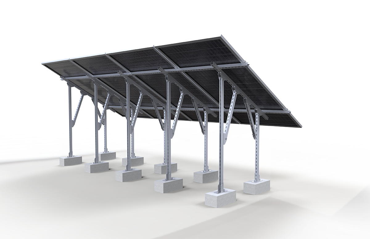 GS炭素鋼屋根架台システムは二重巻きU形鋼設計を採用しています。本製品は平屋根に適用され、プレキャストコンクリート基礎、炭素鋼及び合金鋼で固定を構成します。安全でシンプルな設計、取り付け容易な特長を持ち、商業または住宅用屋根太陽光システムの設計計画において、対応するフックを使用して太陽光パネルを固定する役割を果たす。