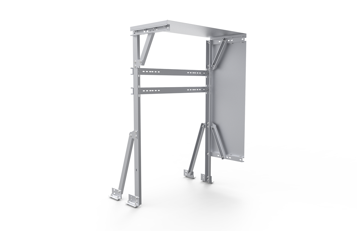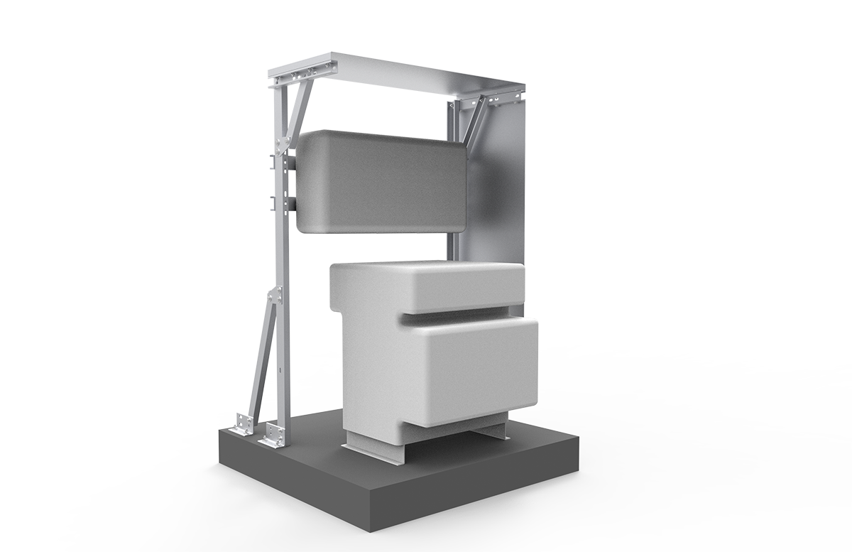 GS変圧器+接続箱一体型支架は、PCSを降圧変圧器の上に設置可能にする架台です。高強度のC形鋼を組み合わせて使用し、優れた機械的性能を有するため、多種多様な屋上設置プロジェクトに適用できます。コンクリート基礎で固定するため、従来の方式で問題であった土壤や屋根構造への損傷を完全に回避し、安全性と信頼性を確保します。独特の「架上架」設計により、PCSを変圧器の真上に配置でき、設置スペースの大幅な節約も実現します。